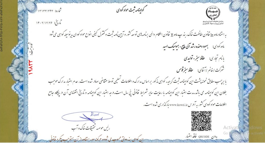 ترکیبات کود کشاورزی هیومیک اسید حفاظ سبز