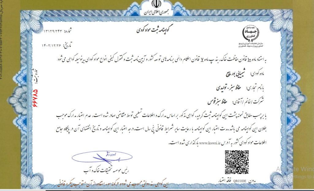 مصرف کود بور اتانل امین حفاظ سبز بصورت محلول پاشی