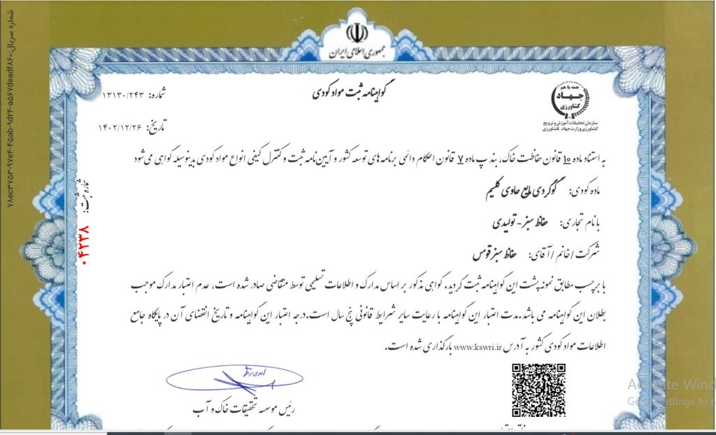 محصولی متشکل از گوگرد و کلسیم میباشدکه ضمن تامین گوگرد وکلسیم مورد نیاز گیاه •میتواند موجب سبزینگی گیاهان شود.